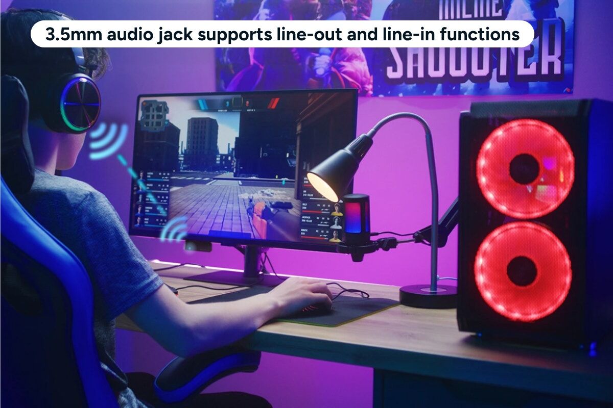 • 3.5mm AUX port. Supports line-out and line-in functions.