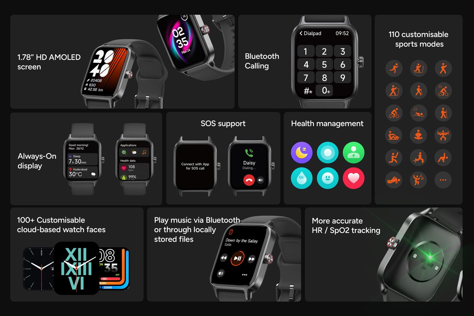 - 1.78” HD AMOLED screen. Crisp HD display with vibrant colours.