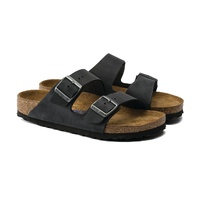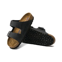 The Birkenstock Unisex Arizona Oiled Leather Sandals are a genuine classic that has been delighting both men and women for decades. The sandals come with 2 straps and have a deep heel cup that supports the foot tissue and holds the heel bone firmly in its natural position. The arch supports that run alongside the sides of the footbed surround the tarsal bones inside and out, giving the foot the stability it needs when it takes a step. The support that runs through the middle of the footbed stabilises the metatarsal bone. In this way, the transverse arch support helps ensure that the foot has a naturally straight and solid stance. There are raised indentations at the front of the footbed near the toes. Thanks to the toe grip the toes remain loose and spread out in their natural position. The indentations also support the natural rolling motion of the toes. The footbed is drawn up especially high at the front. As a result, the high footbed edge protects the toes during the rolling motion of the foot.