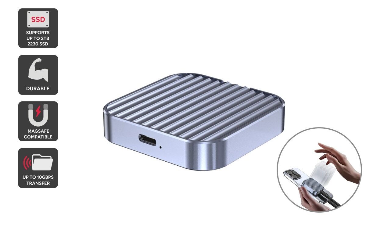 Expand your phone’s potential with the Kogan™ MagSafe-Compatible M.2 2230 NVMe SSD Storage Enclosure. Capture hours of ProRes footage, store endless photos and access files instantly.