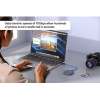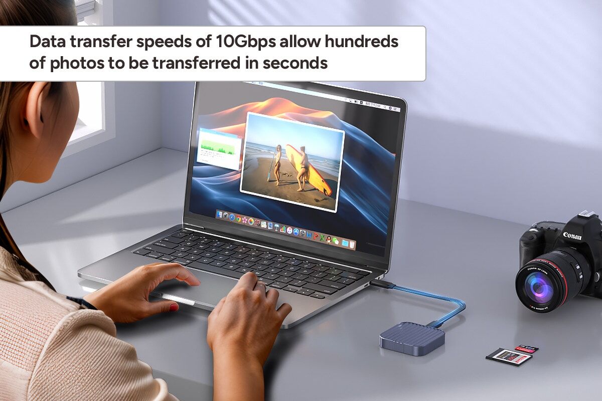 • 10Gbps data transfer speed. Transfer hundreds of photos in seconds.