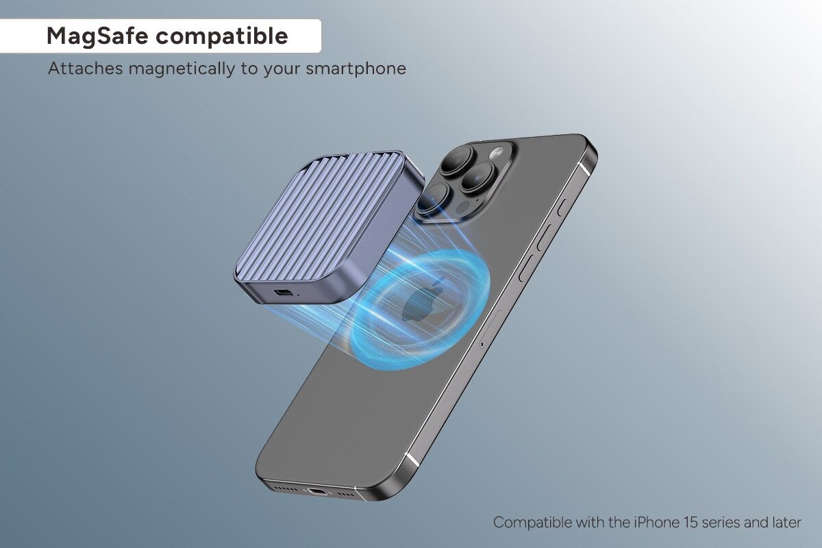 Simply attach this enclosure to your iPhone or Android with a magnetic ring using MagSafe technology, and you’re ready to go. No bulky cases or connectors – just a magnetic, secure fit that blends seamlessly with your device.