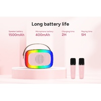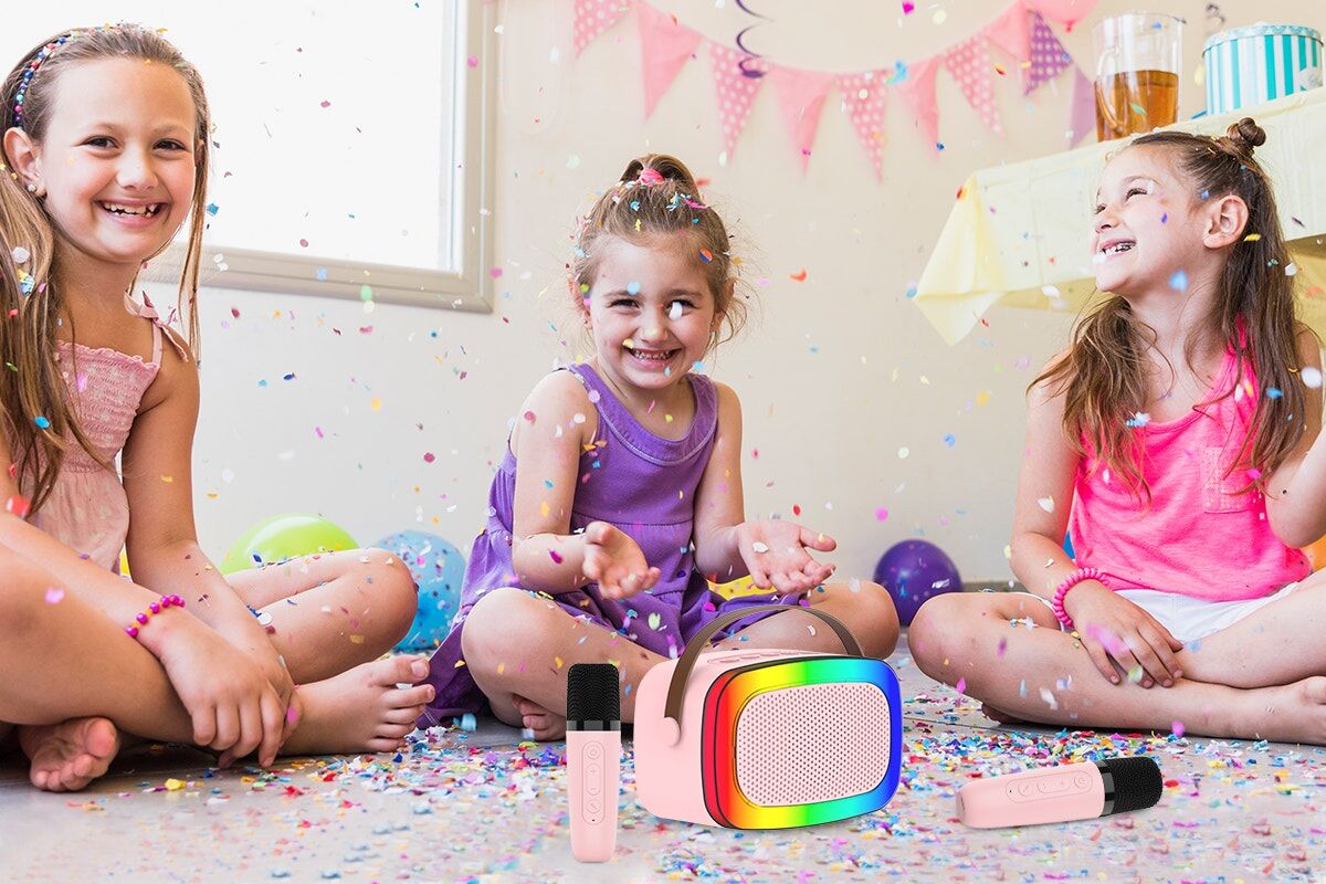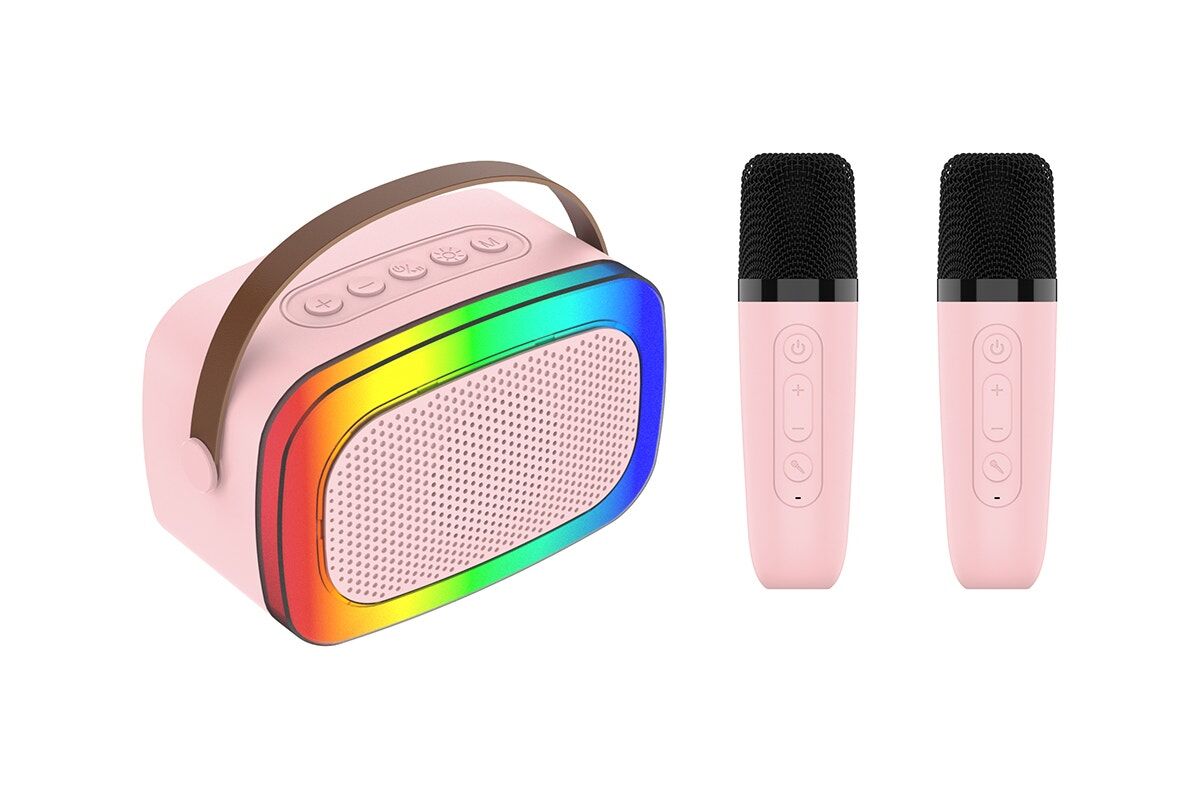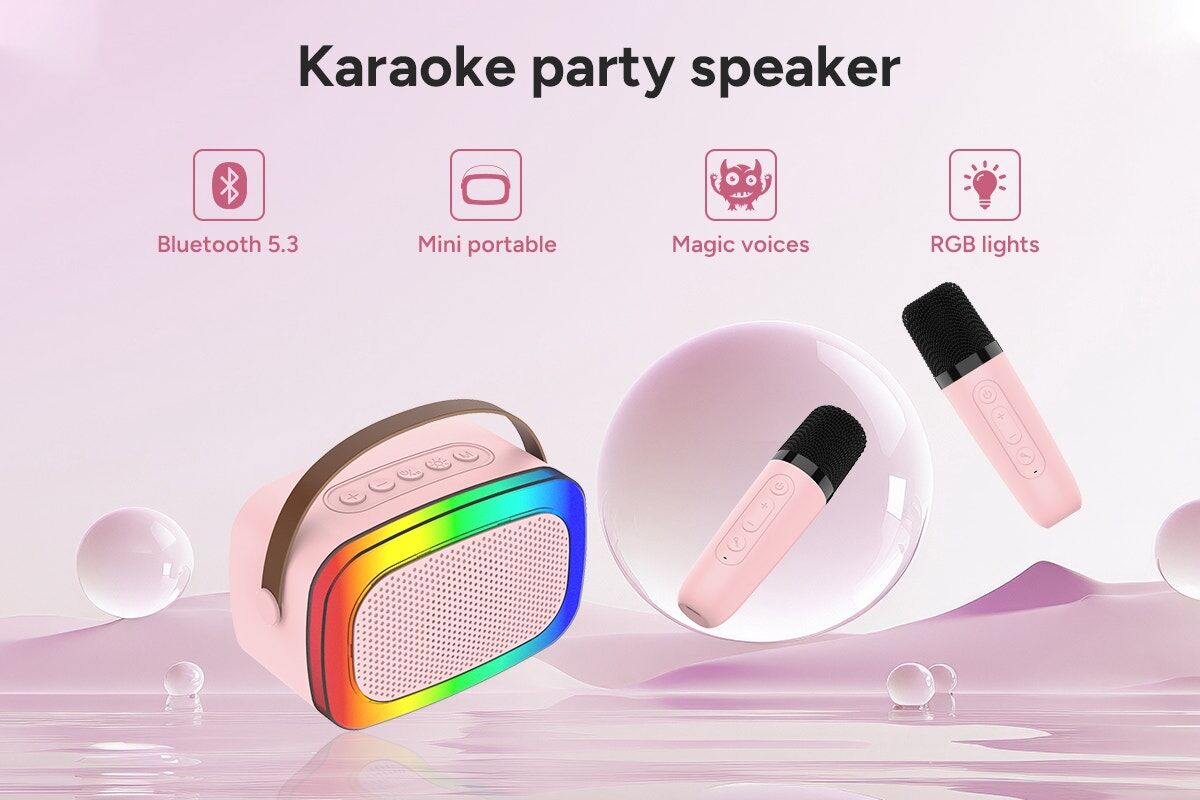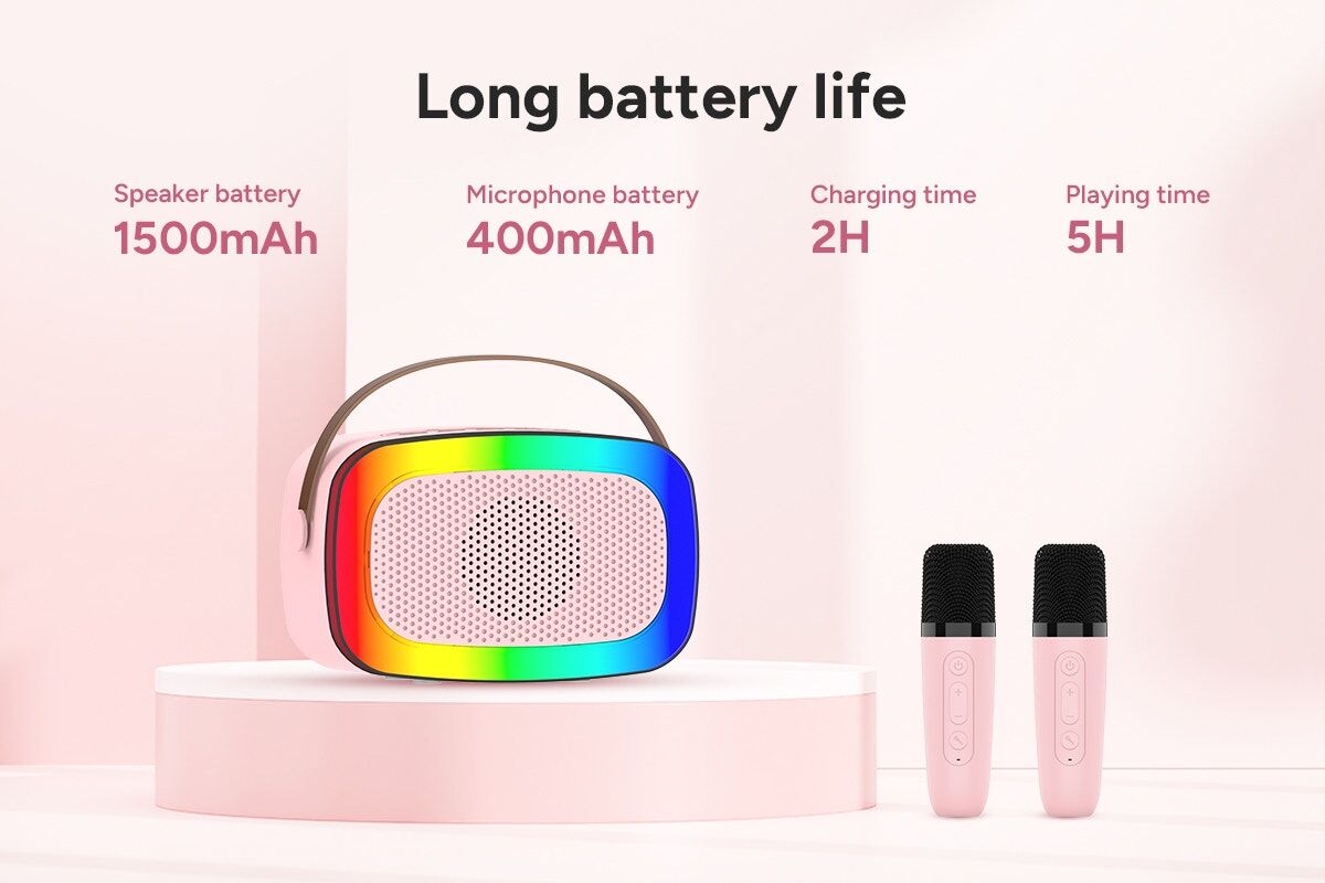 This mini karaoke machine is designed for portability, making it easy to carry anywhere. Despite its compact size, it packs a punch with built-in speakers and two wireless microphones, so you can enjoy karaoke on the go. Whether it’s a party, family gathering or a road trip, this machine brings the fun.