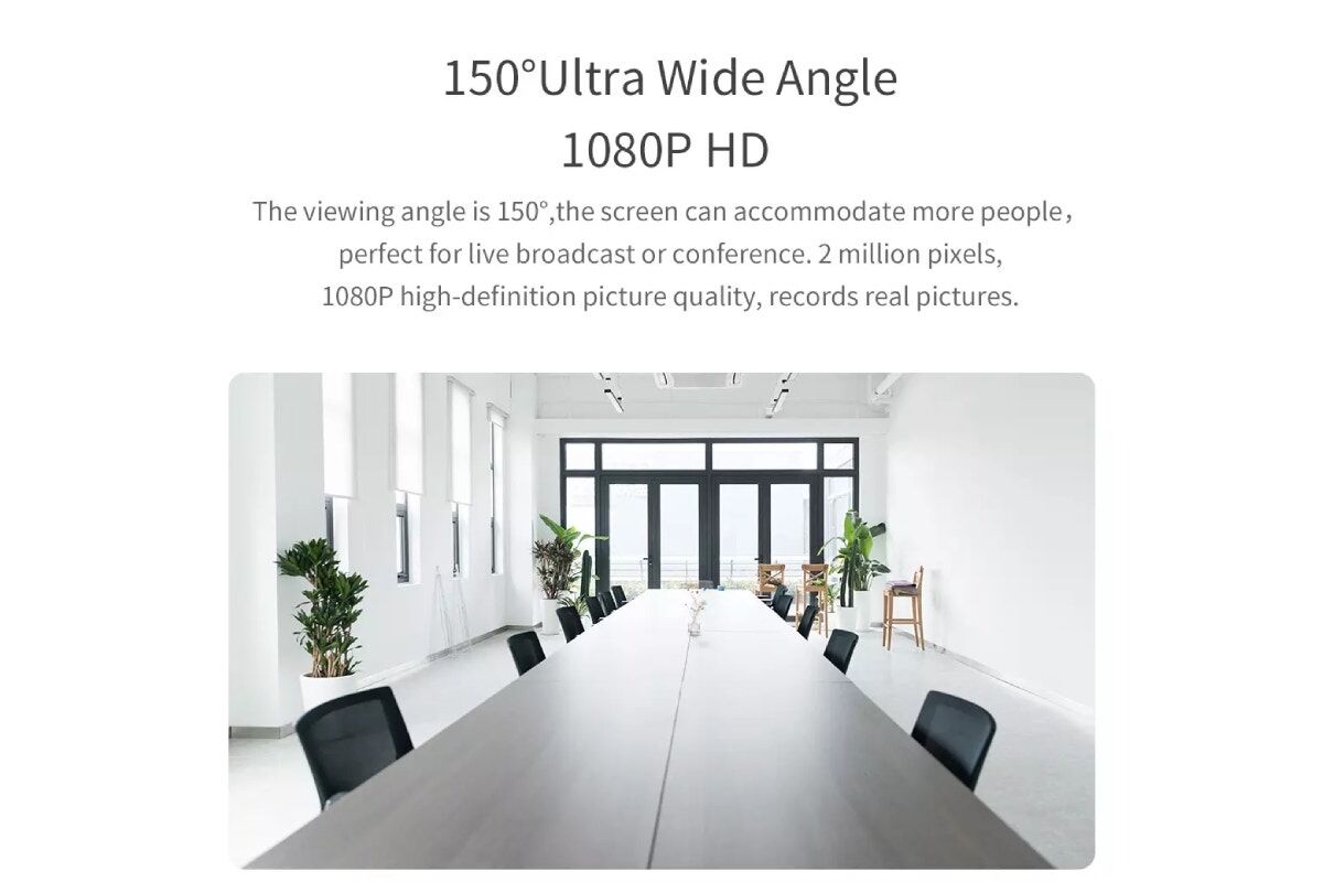 The 150° ultra-wide viewing angle allows for more coverage, making it perfect for group video calls, live streaming, or conferences. Everyone fits comfortably in the frame, and you get a true-to-life video with 2 million pixels and 1080p clarity.