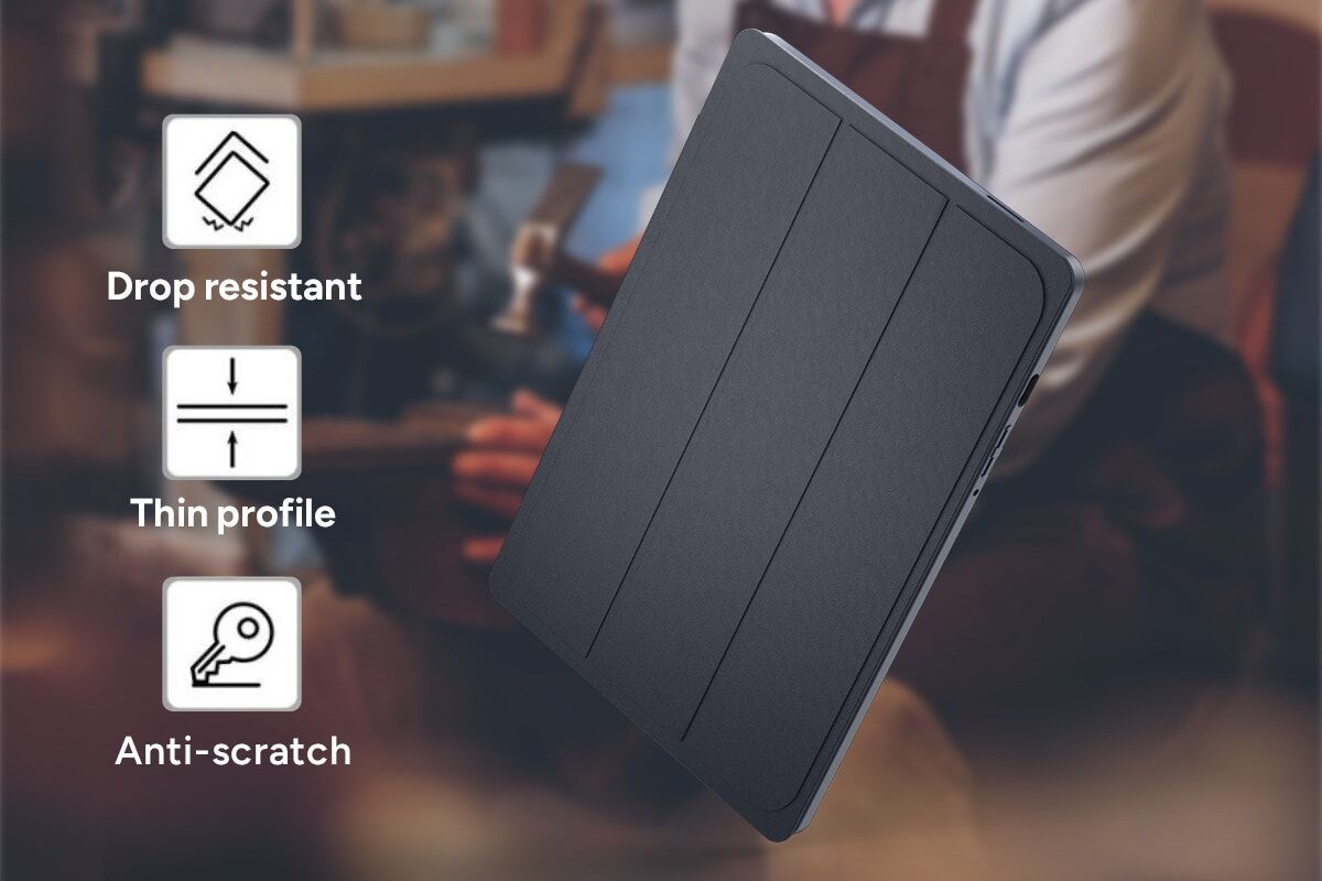 This folio case provides dual purposes by protecting your screen when not in use and transforming into a foldable stand for hands-free use. Whether reading, watching videos, or typing, this case ensures an optimal viewing angle for every task.