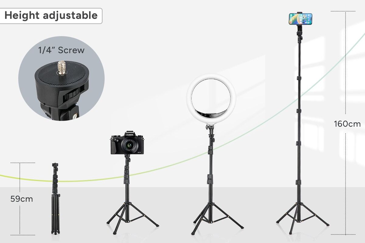 - Adjustable height. Maximum height of 160cm for various shooting angles.