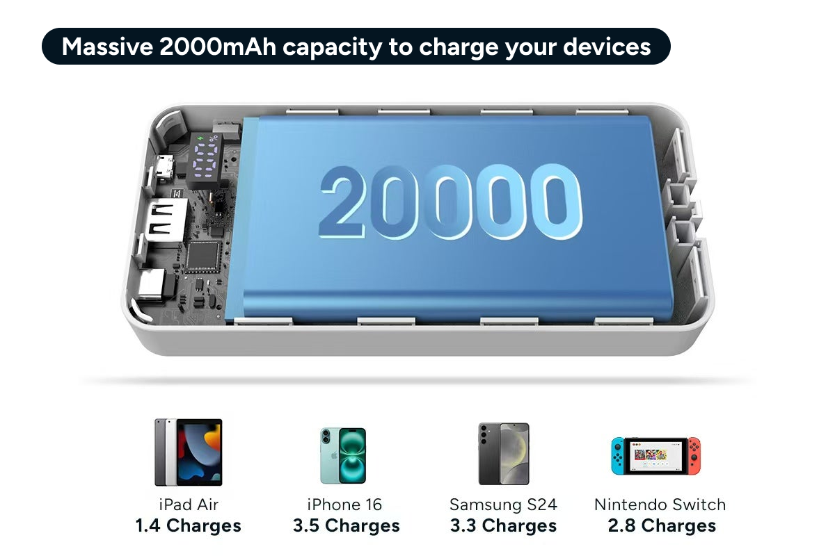 Massive 20,000mAh capacity