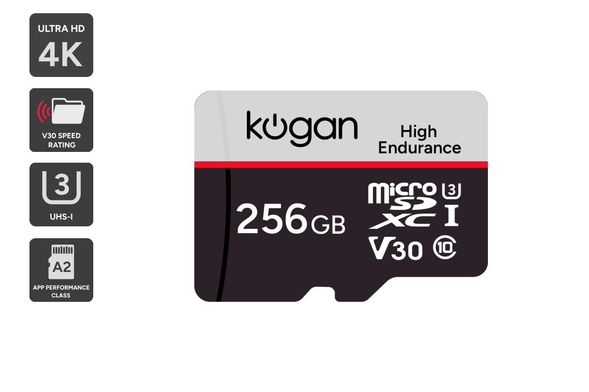 Store more, capture every detail and experience high-speed performance with the Kogan™ High Endurance 256GB Micro SD Card. Designed for continuous, high-demand tasks, this SDXC card is perfect for security, dash and body cameras, and more.