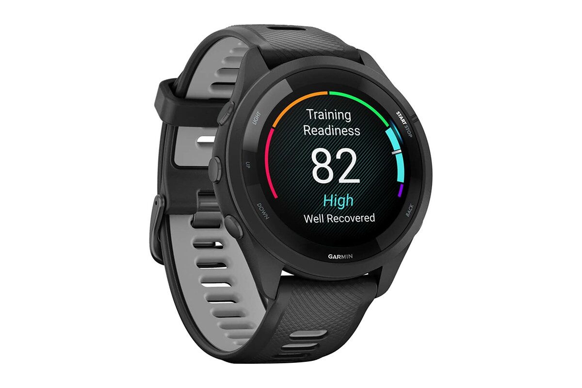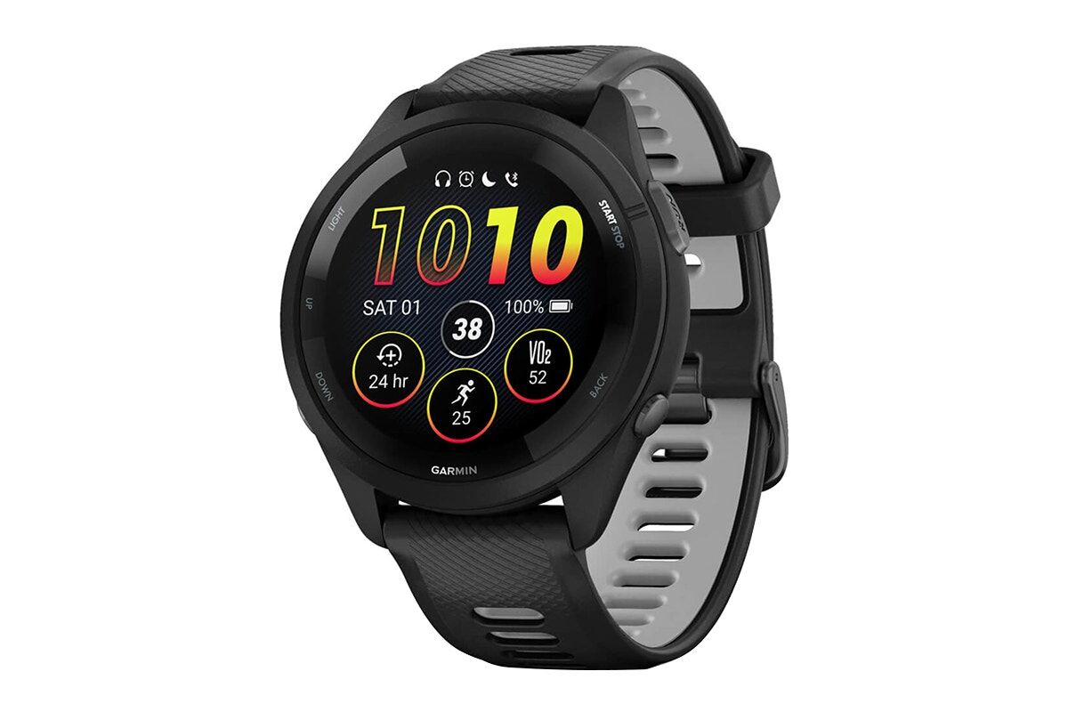 Garmin Forerunner 265 Smart Sports Watch (Black with Black/Powder Grey Band, 46mm)