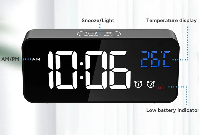 - 4-level adjustable brightness + 13 alarm ringtones. Customise screen glow and how you wake up