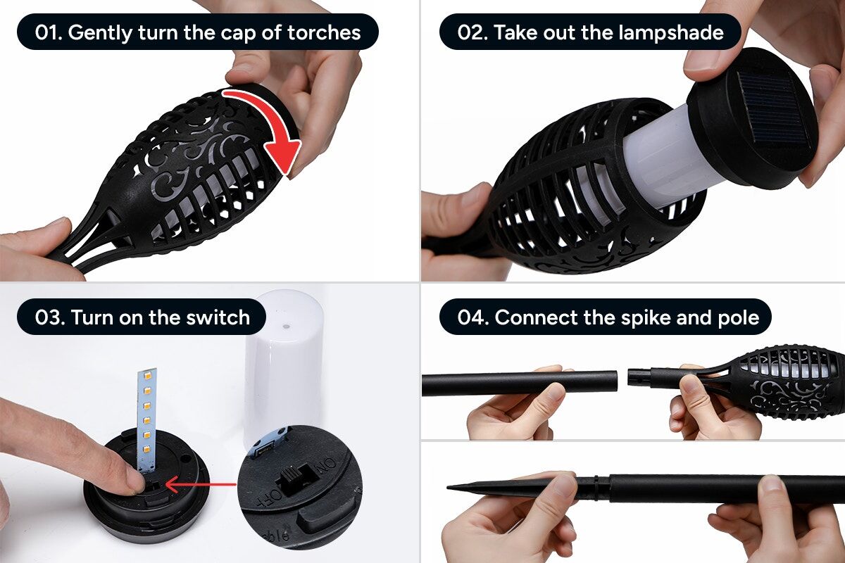 Create a relaxed, inviting atmosphere with realistic dancing flames. Emitting a flickering 1400–1600K light that mimics fire without the danger, these torches add warmth and charm to patios, paths, or gatherings under the stars.