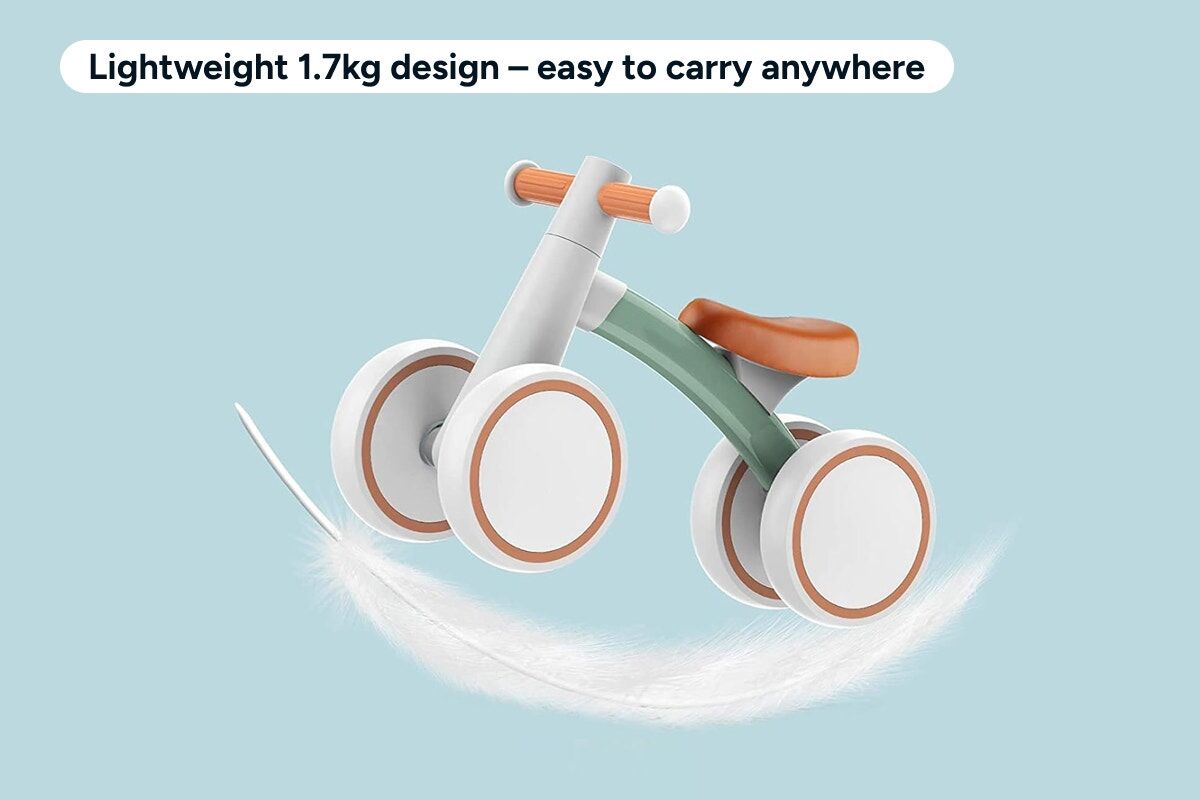 At just 1.7kg, it’s easy to carry from the playroom to the park. Durable materials and non-marking wheels make it suitable for indoor floors and outdoor paths alike.