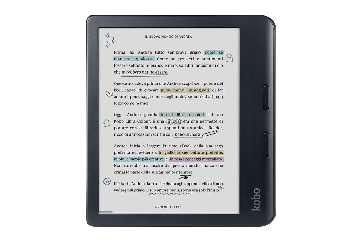 Compatible with Kobo Stylus 2*, the Kobo Libra Colour lets you mark up and highlight eBooks in colour. Underline inspiring lines and add a personal touch to your reading experience.