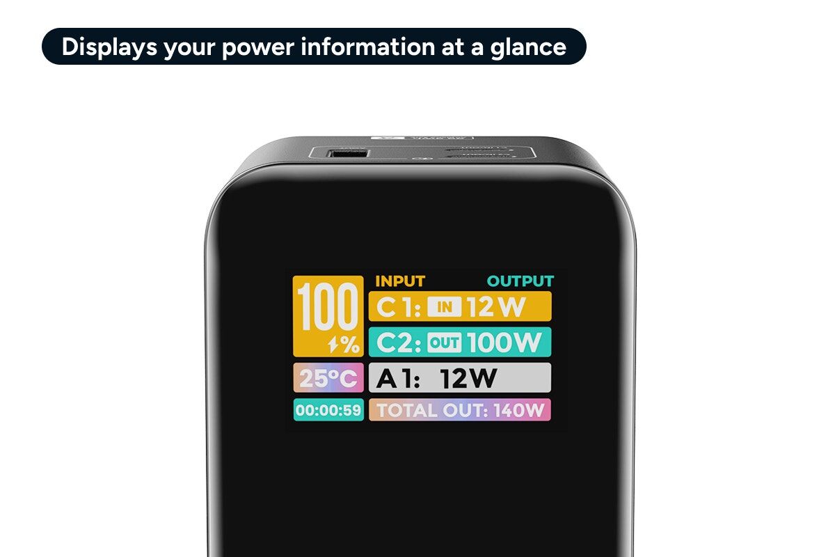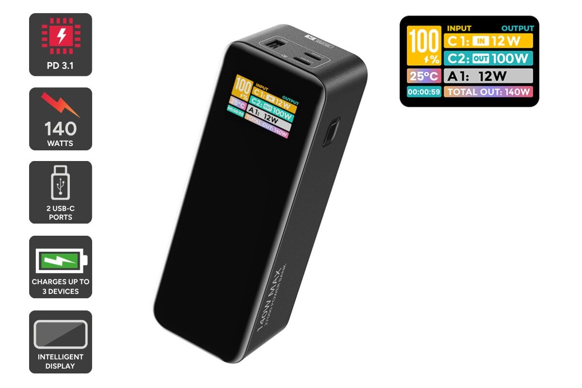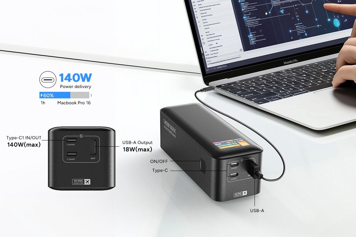 Equipped with 140W Power Delivery, this bank can charge high-demand devices like a MacBook Pro or gaming laptop quickly and efficiently. Get up to 60% charge in just one hour – perfect for productivity on the go.