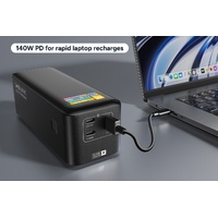 With a massive 27000mAh capacity and ultra-fast 140W PD output, the Kogan™ EnergyMax 140W Power Bank charges laptops, tablets and phones at top speed. Whether you’re on the move or off the grid, it’s the ultimate solution for fast, flexible power delivery in a compact form.