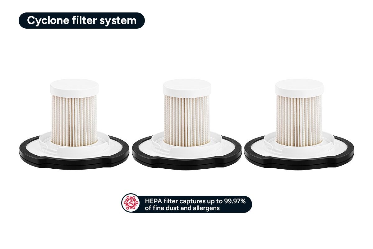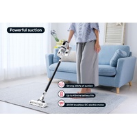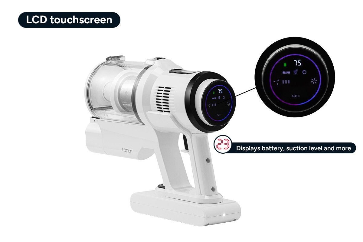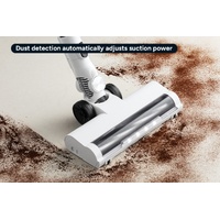 This cordless vacuum cleaner is designed to make cleaning easy, with its 25kPa suction power, brushless motor, and HEPA filtration system. It has a strong 250W brushless motor, a washable HEPA filter to capture 99.97% of fine dust and allergens, and a LCD touchscreen display that shows battery, speed and more. It also comes with a 2000mAh detachable li-ion battery and a combination tool with crevice and brush attachment. For convenience, it can be stored and charged using the wall-mounted dock.