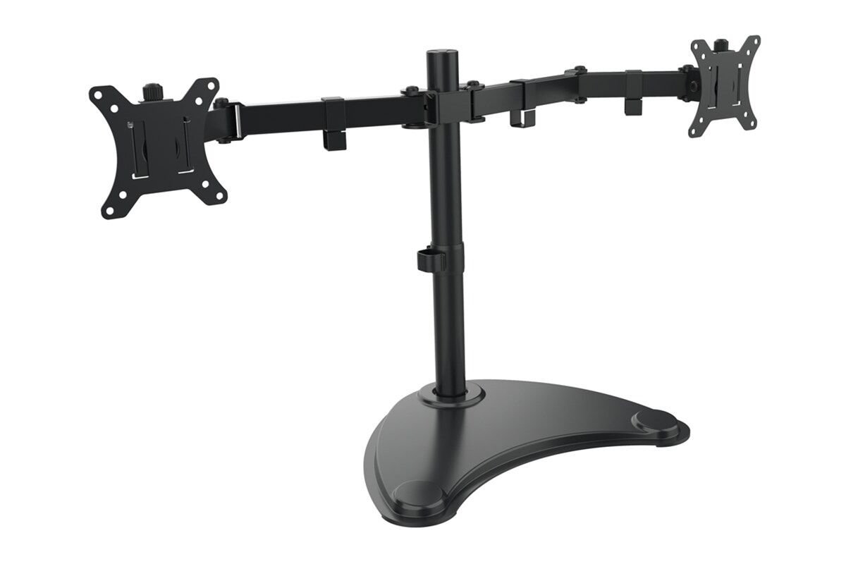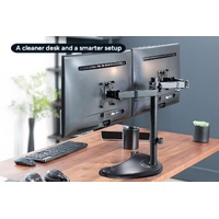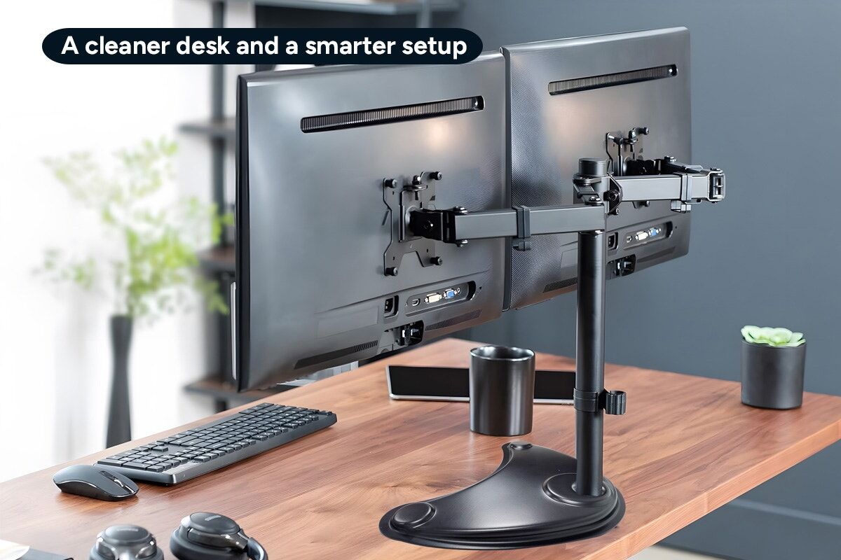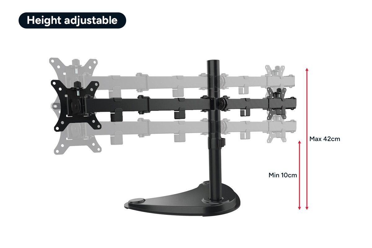 This dual monitor stand accommodates 17” to 32” monitors, supporting both flat and curved screens up to 10kg per arm. Its robust steel construction ensures stability, making it ideal for heavy-use environments like offices and gaming setups. Whether you have multiple documents open or your game and streaming software, this dual monitor stand is up to the task.