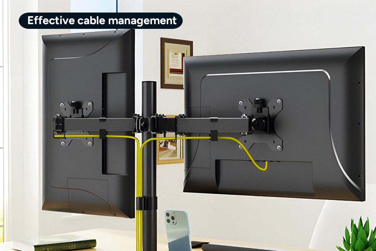 The detachable VESA plate simplifies installation, making it easy to attach or remove your monitors. Built-in cable clips keep cords organised, creating a clean and professional-looking workspace free from clutter.