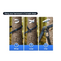 The included 3m straps and carabiners make it fast and easy to hang your hammock from trees, poles or posts. No knots, no fuss – just adjust and relax.
