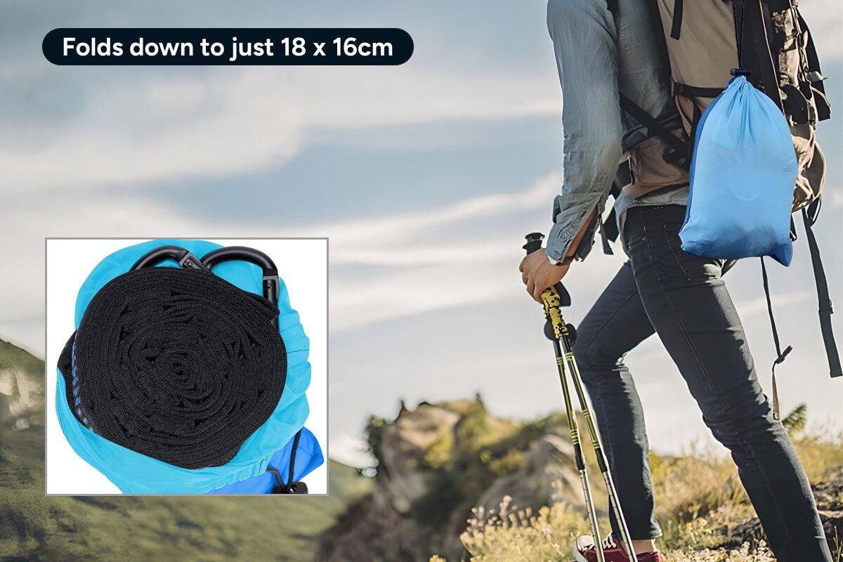 Despite its generous size, this hammock folds down into a compact 18cm x 16cm pouch, making it the perfect companion for travellers, campers and hikers. It weighs just 670g so it won’t weigh down your pack.