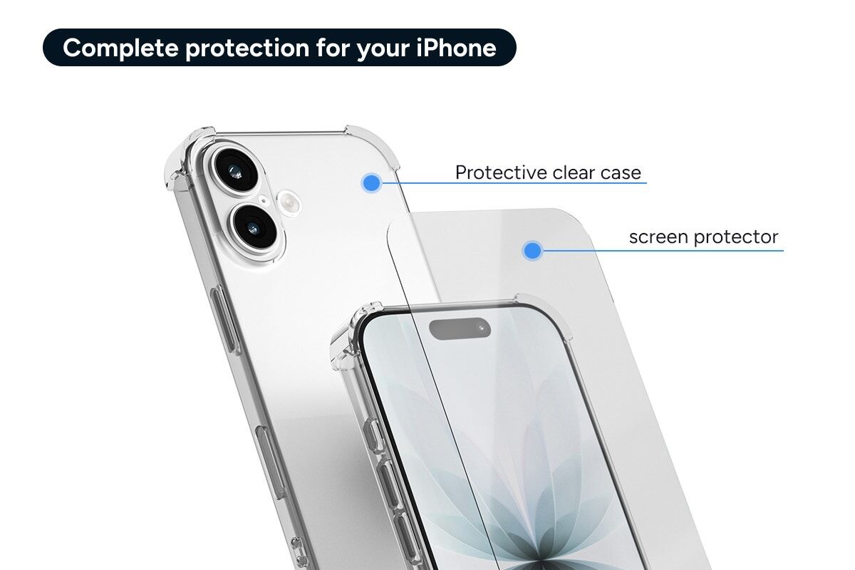 Give your iPhone 17 complete, everyday defence with this 2-in-1 Protection Kit, combining a slim, shock-absorbing clear case with a crystal-clear tempered glass screen protector for reliable all-round coverage without compromising style.