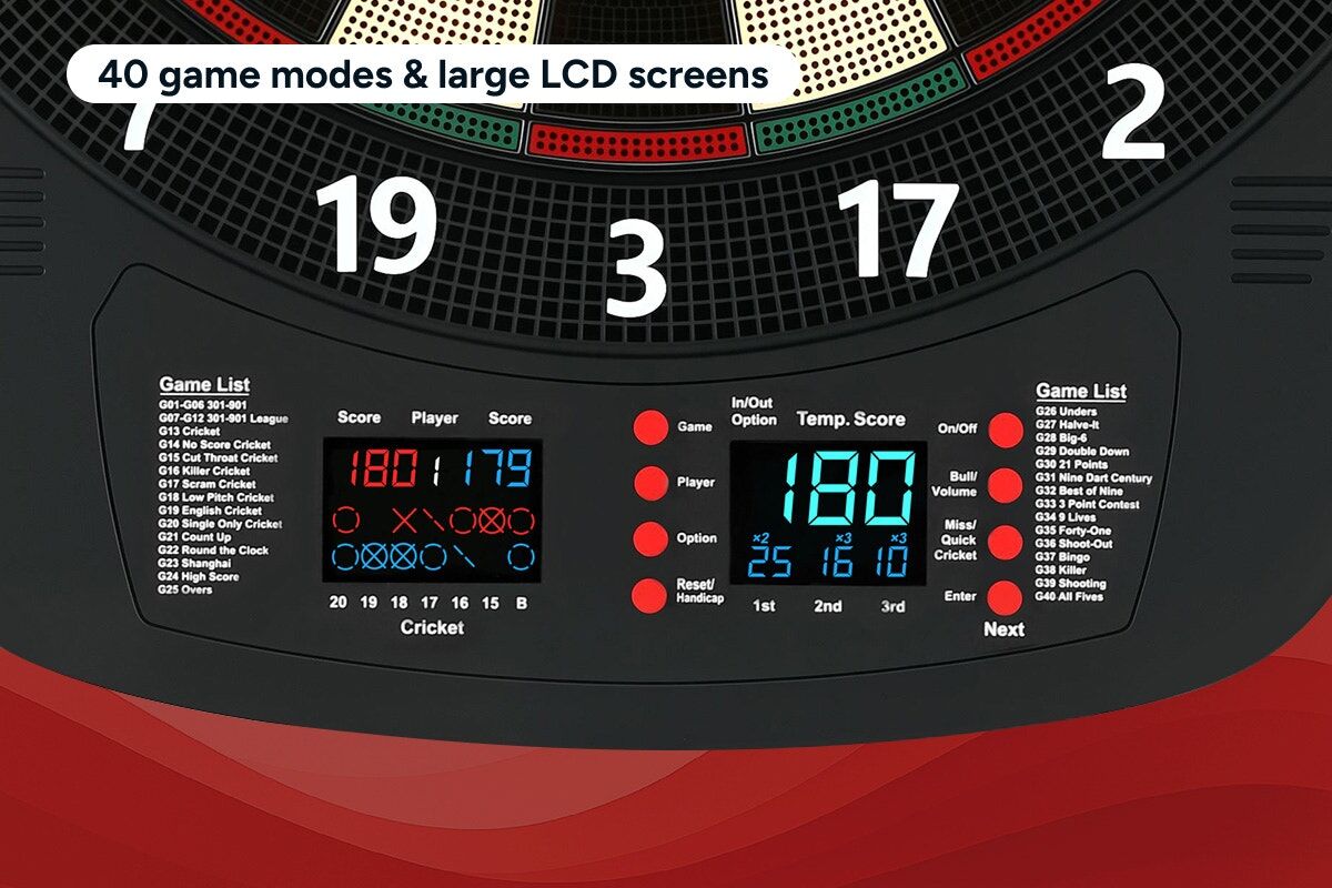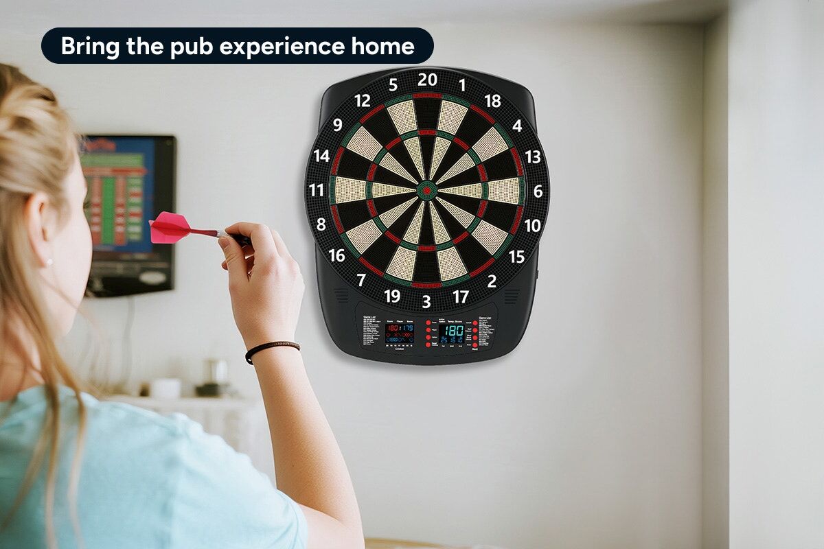 Bring the pub experience home with this electronic dart board set. Packed with 40 exciting game modes, a bright LCD display and a soft-tip design, it’s perfect for friendly competition with family and mates.