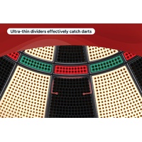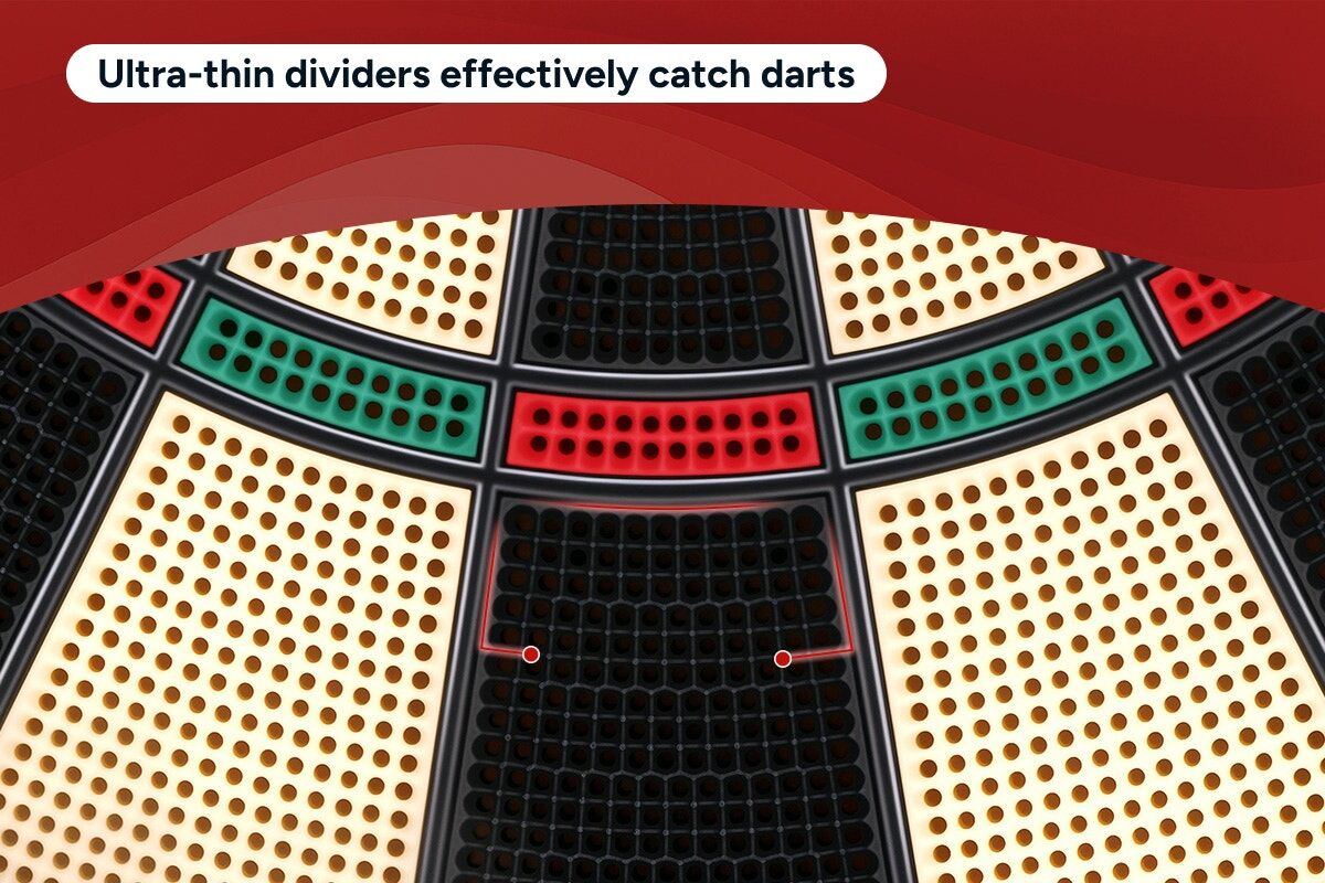 With a 13.5” target area and ultra-thin dividers, darts land and stick more often. The 17” catch ring ensures misfires don’t damage walls, making it ideal for home use.