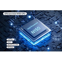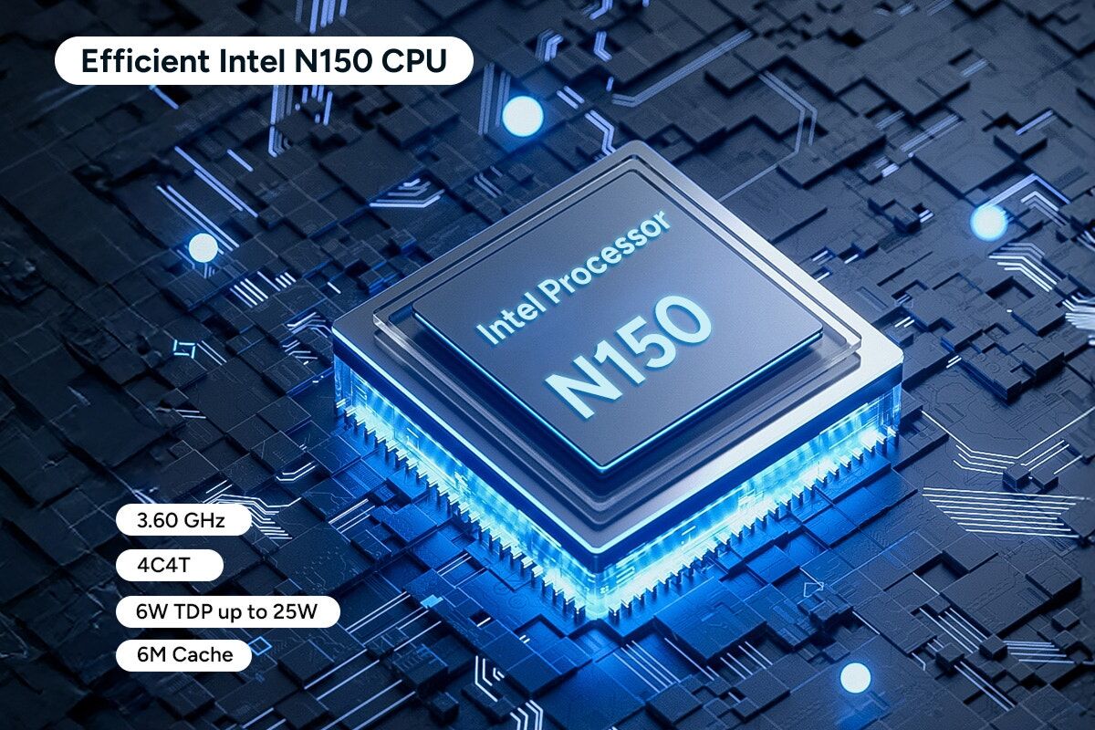 • Intel N150 processor. 4 Core CPU runs up to 3.6 GHz.
