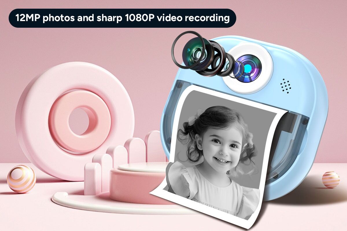 Kids Instant Print Digital Camera with 4 Rolls (Pi