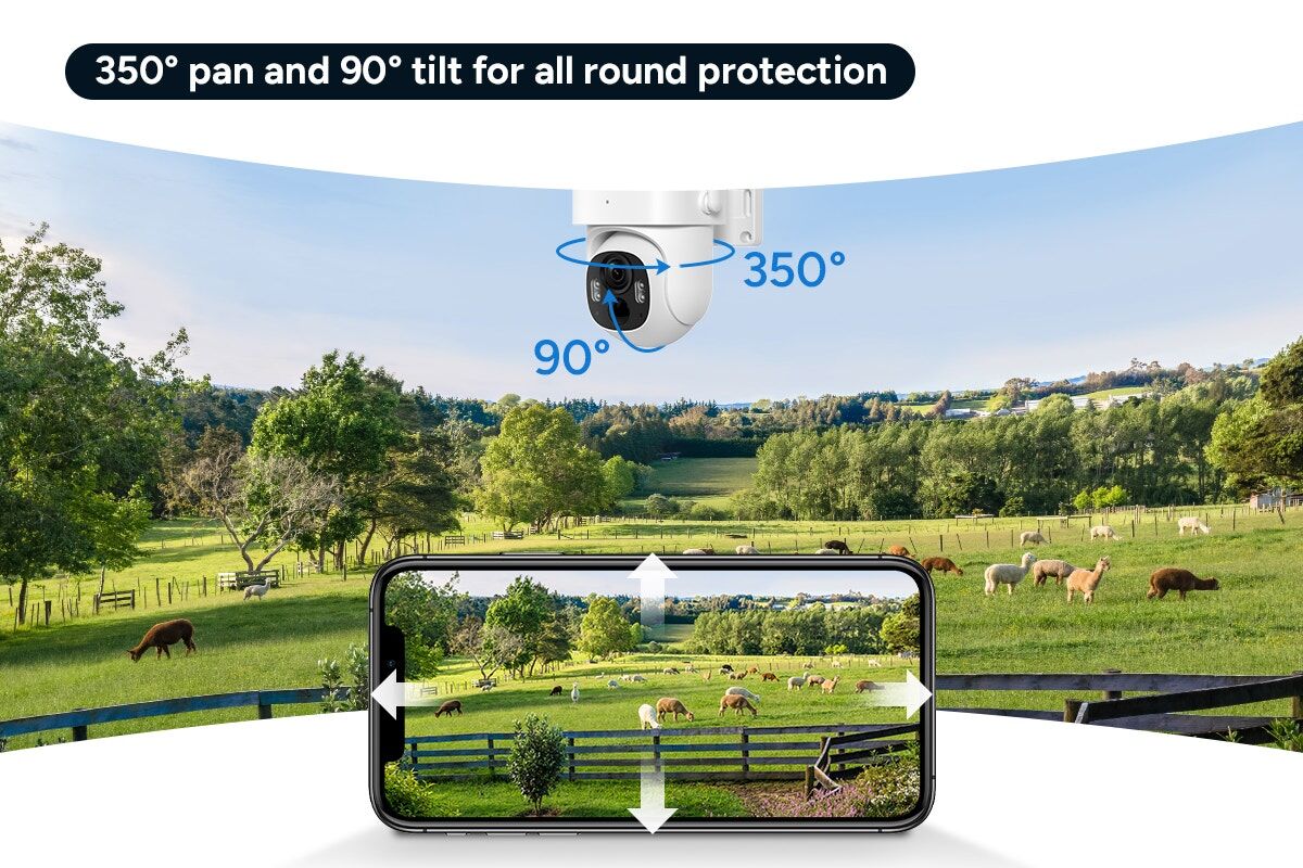 With full 350° horizontal and 90° vertical control, you can pan and tilt the camera remotely to track movement or check every corner of your property – even around fences or driveways.
