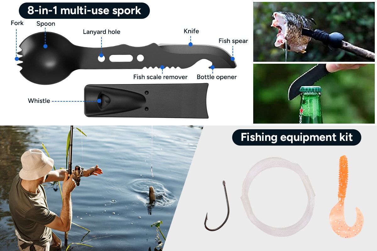 This kit combines 13 versatile tools – from a tactical pen to a fishing kit – so you’re prepared for unexpected situations. Whether it’s starting a fire, finding your way, or making quick repairs, this set has you covered.