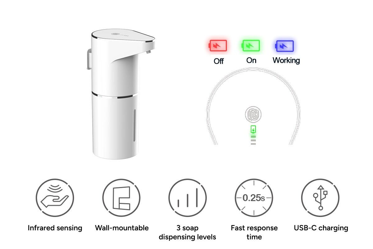 Built with IPX4 splashproofing and a leakproof design, this dispenser is made to handle splashes and daily use. Its rechargeable battery delivers up to three months of power per charge, giving you worry-free operation day after day.