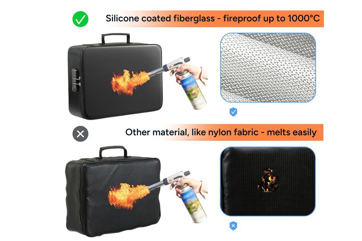 - Fireproof and water-resistant protection. Double-layered fibreglass withstands up to 1000°C and repels water.