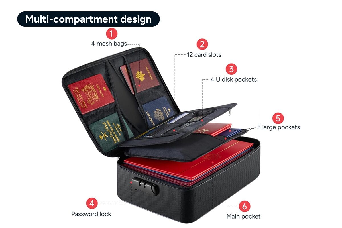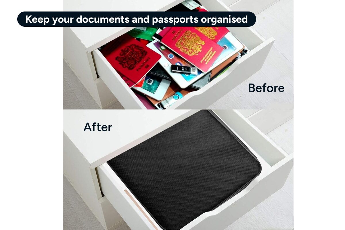 Crafted with a sleek, fireproof exterior, this organiser is tough, long-lasting and easy to tuck away in safes or drawers. Protect your valuables without sacrificing style or convenience.