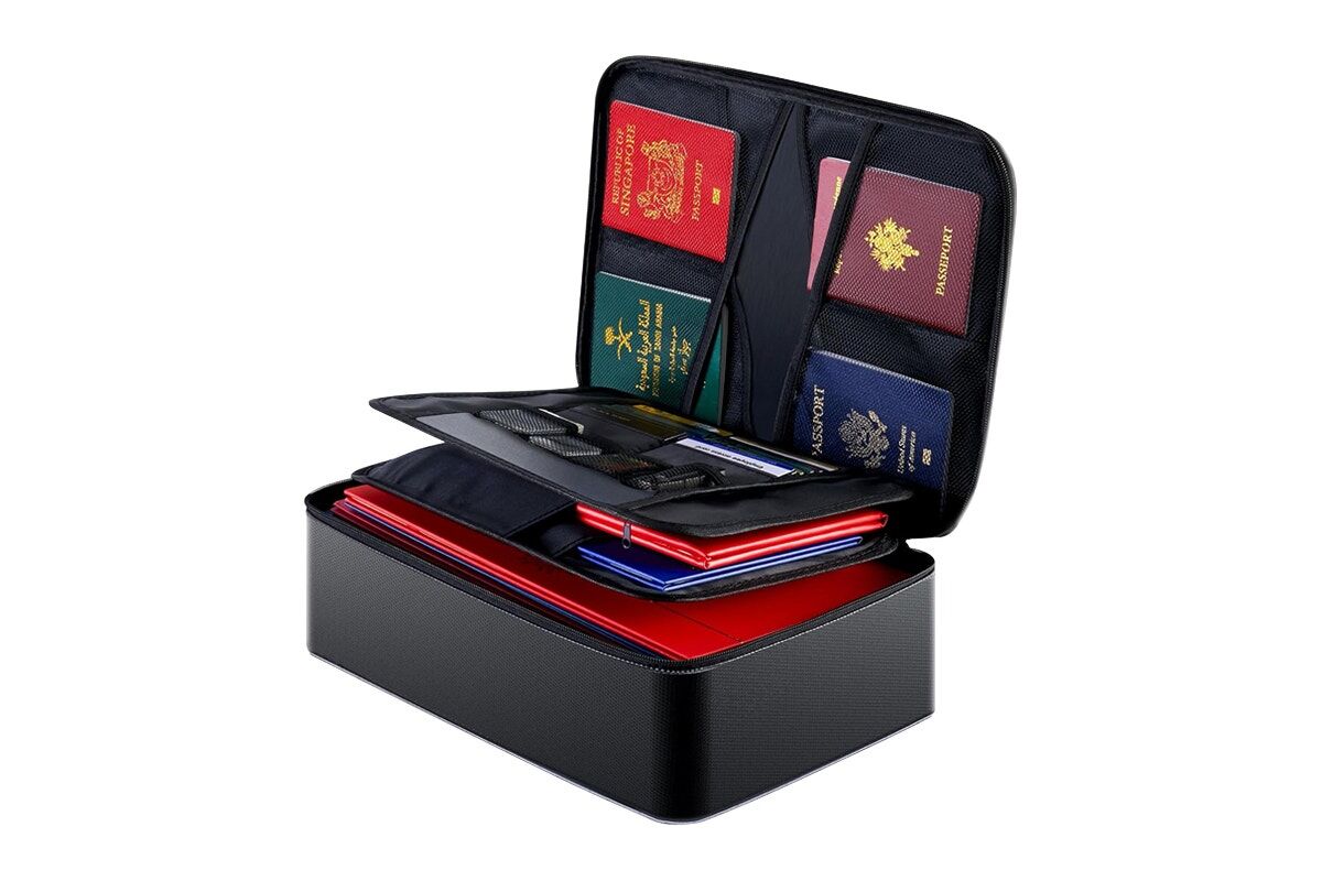 Keep your most valuable documents safe with the fireproof and waterproof document organiser. Built with silicone-coated fibreglass that withstands extreme heat and resists water, it’s designed to protect passports, certificates, cards and files in one secure place.