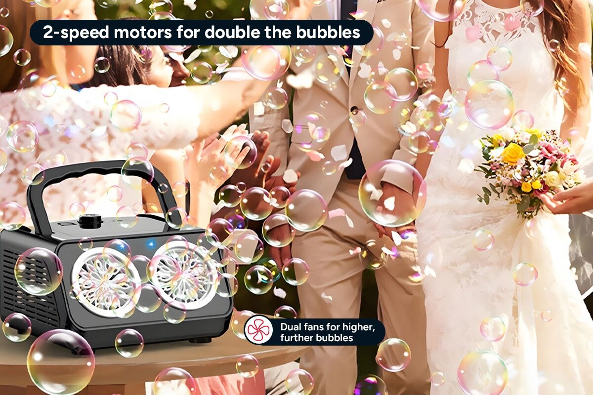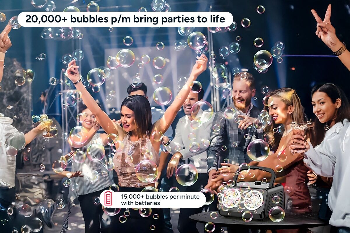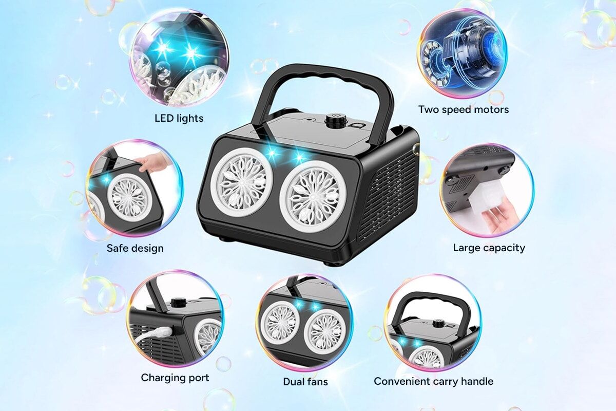 Whether it’s a birthday bash, a backyard BBQ or a school fete, the portable automatic bubble machine unleashes over 20,000+ bubbles per minute, filling the air with a dazzling spectacle that delights guests of all ages.