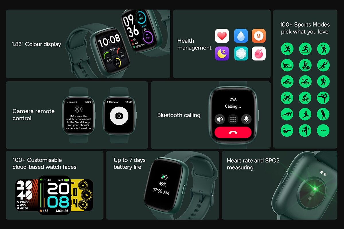 - 100 sports modes. Track workouts, calories and progress with precision.