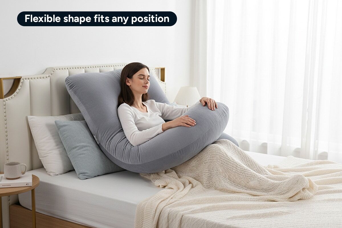 Experience deeper comfort and restorative rest with the Ovela™ Full-Body Pregnancy Pillow, designed to cradle your body with full support from head to toe.