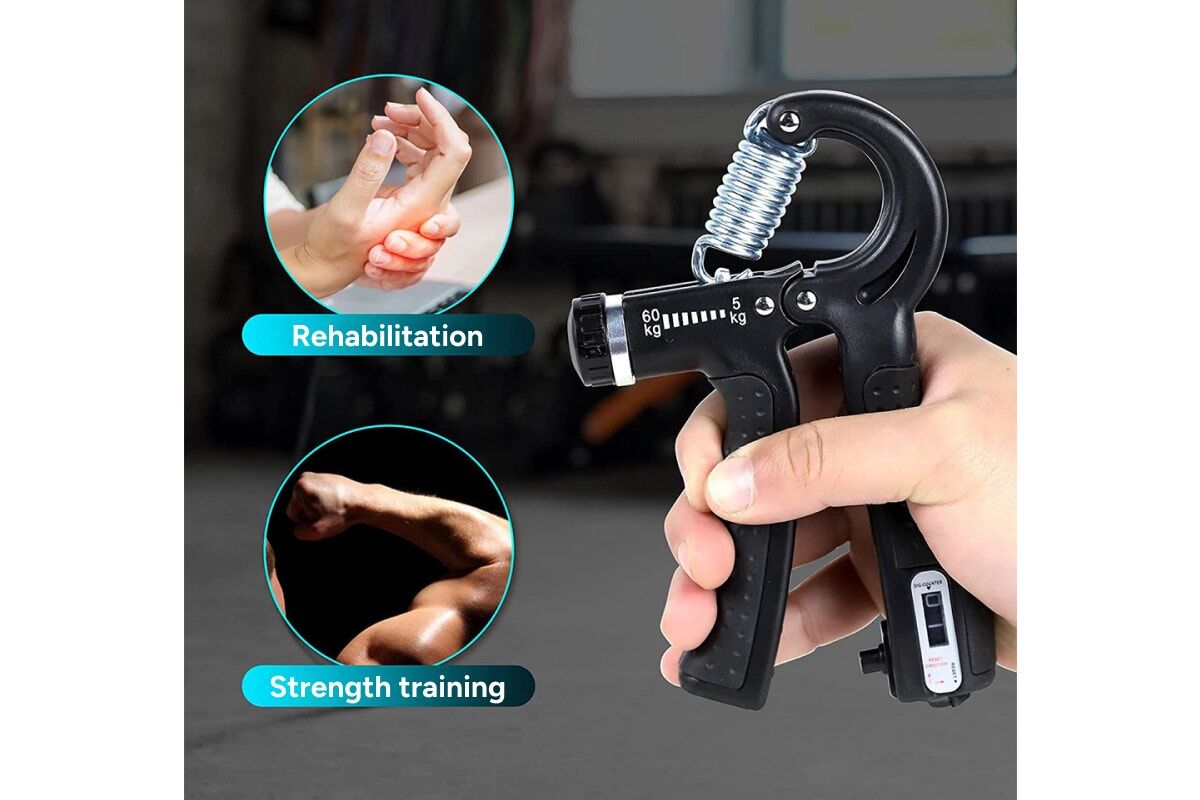 This set goes beyond standard hand grips, with a finger stretch resistance band, grip ring and stress ball included. Together, they target every muscle in your hands, wrists and forearms for balanced strength and flexibility.