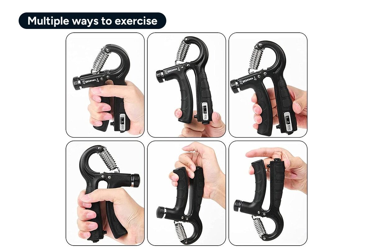 Build stronger hands and forearms with this Hand Grip Strengthener Set. With adjustable resistance, ergonomic comfort and multiple training tools, it’s perfect for fitness, rehab or everyday strength training on the go.