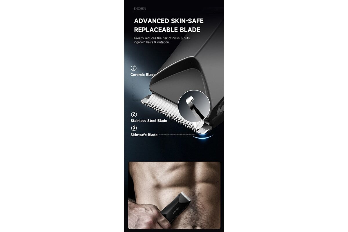 The Enchen Spark 2 Body Hair Trimmer delivers smooth, safe grooming with skin-friendly blades, powerful performance and ergonomic design. Waterproof, cordless and easy to maintain, it ensures precision trimming for both body and sensitive areas.