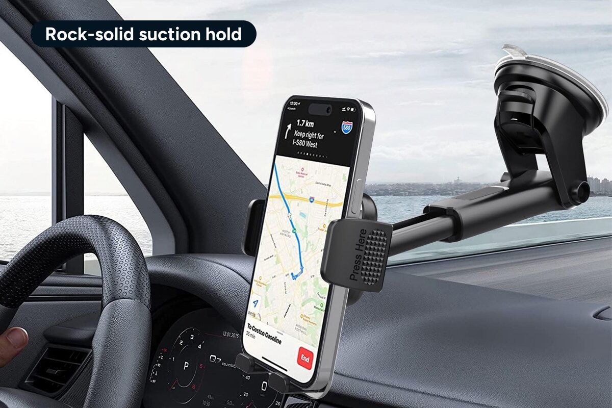 The powerful suction cup with a switch lock mechanism keeps your phone firmly in place, even on bumpy roads. Plus, it’s washable and reusable-just rinse, dry and reattach for long-lasting performance.