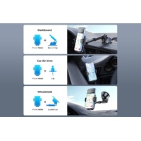 Keep your phone secure and within reach with the Kogan™ 3-in-1 Car Phone Holder for Dashboard, Air Vent and Windscreen. Designed for flexibility and stability, it lets you mount your phone exactly where you need it for safe, hands-free navigation and easy access on every drive.