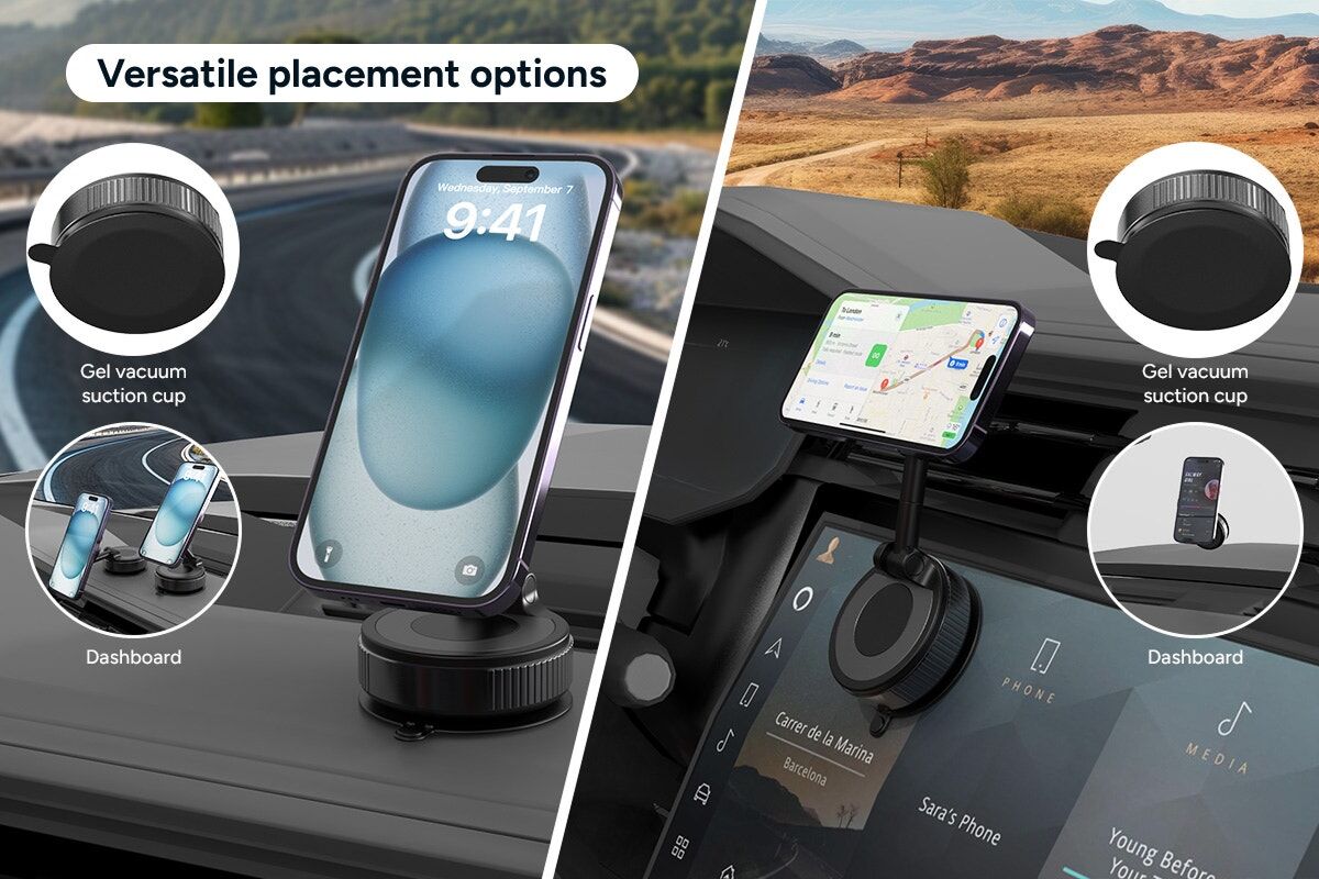 The vacuum-sealing suction cup ensures your phone stays put, even on bumpy roads or sharp turns. It’s easy to install and remove without leaving marks on your dashboard or surface.