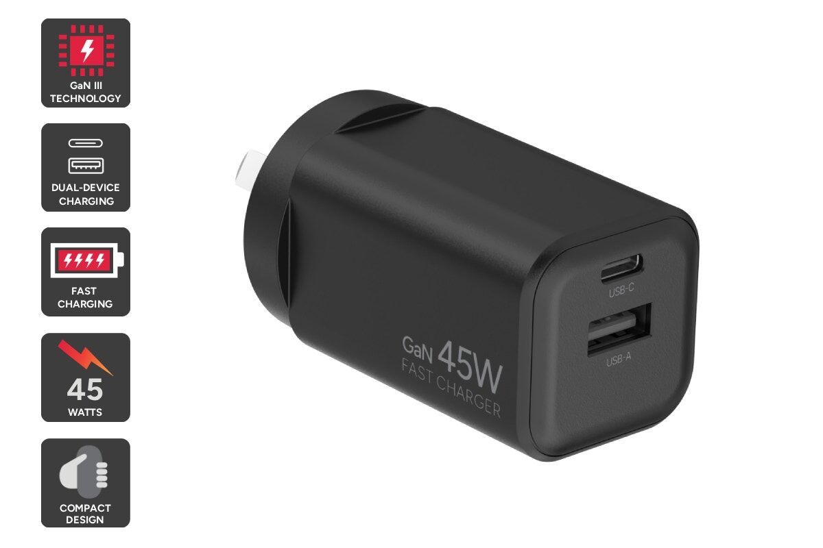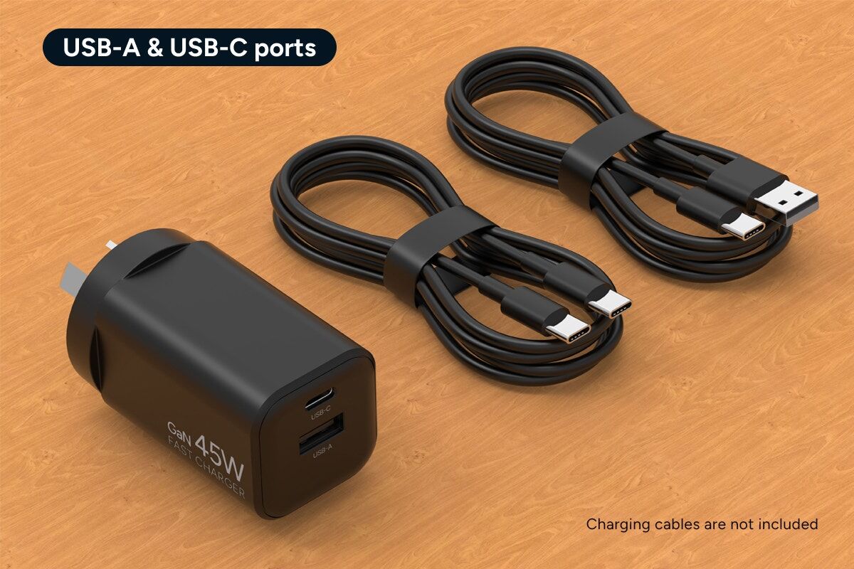 Power up faster and smarter with the Kogan™ 45W 2-Port GaN Super Fast PD Phone Charger. Compact yet powerful, it delivers high-speed charging for phones, tablets and even lightweight laptops, all while staying cool and efficient.
