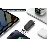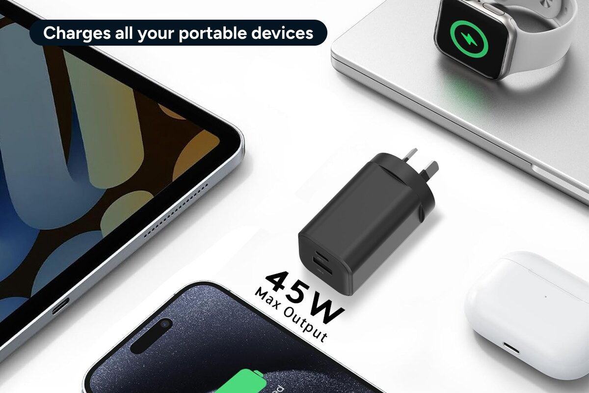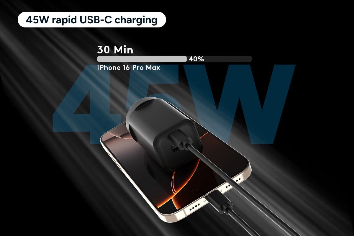 With 45W PD output, this charger powers up an iPhone 16 Pro Max to 40% in up to 30 minutes and can even handle lightweight laptops or tablets. It’s designed for modern portable devices that demand speed and efficiency, getting your headphones, smartwatch, portable speaker and more back to full battery.