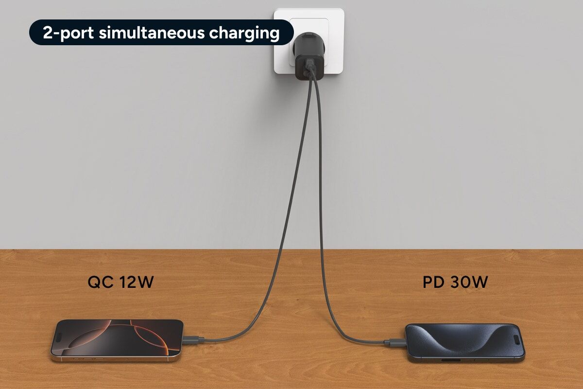 - Smart power allocation. 30W PD + 12W QC when both ports are used together.