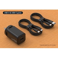 - Dual USB-C and USB-A ports. Charge two devices at the same time.