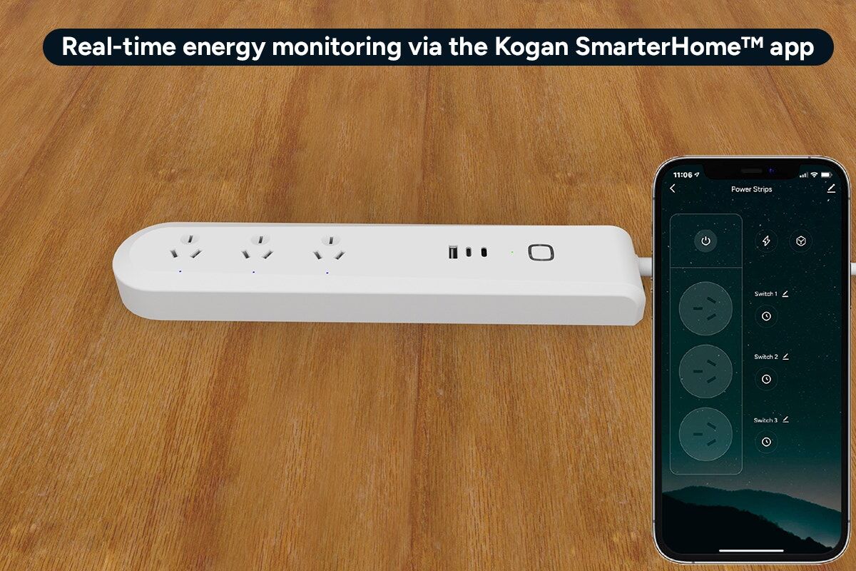 Power up with the Kogan™ SmarterHome™ 30W PD Smart Power Board. Harness efficient power and live energy monitoring across multiple devices in one neat, compact unit.
