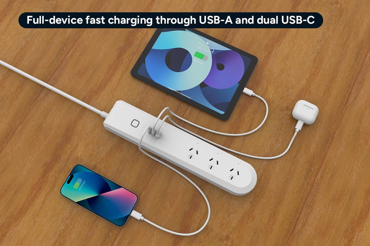 Equipped with smart 30W fast charging, this power board maximises charging efficiency across multiple devices and minimises excess energy consumption.